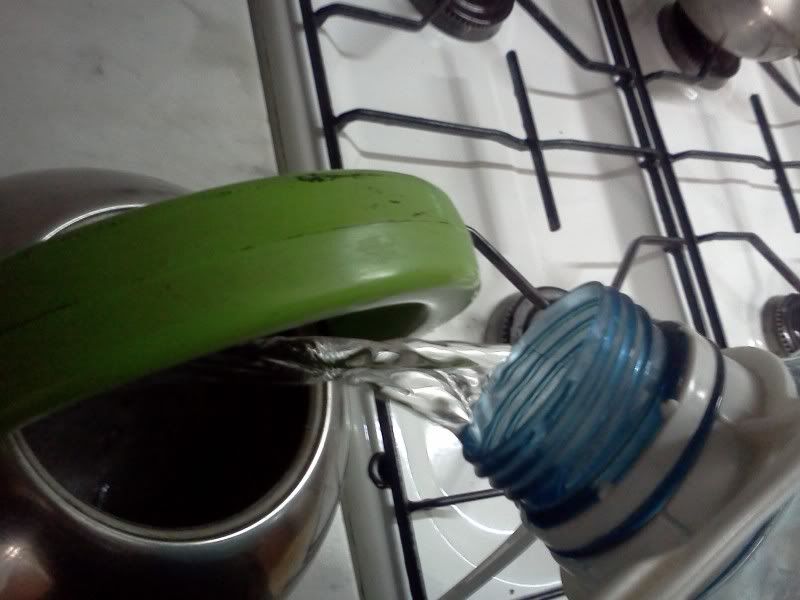 Ahora, con la ayuda de un repasador para no quemarse, agarren la pava