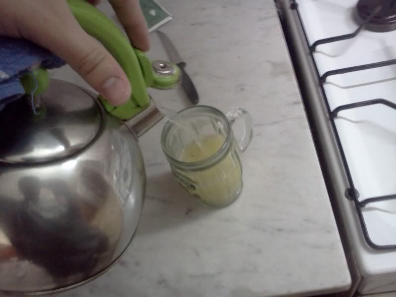 Este es uno de los pasos mas importantes: Deben de volcar el agua en la taza